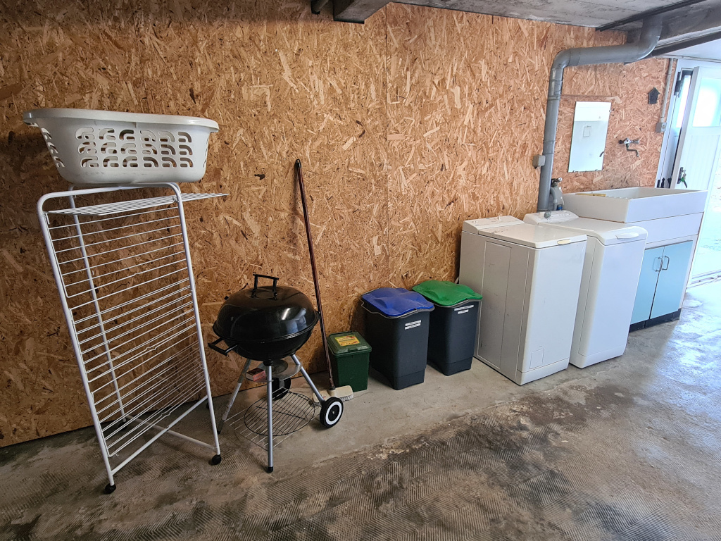 Une machine à laver et des fils à linge pour faire sécher votre linge à l'extérieur ou au sous-sol.
